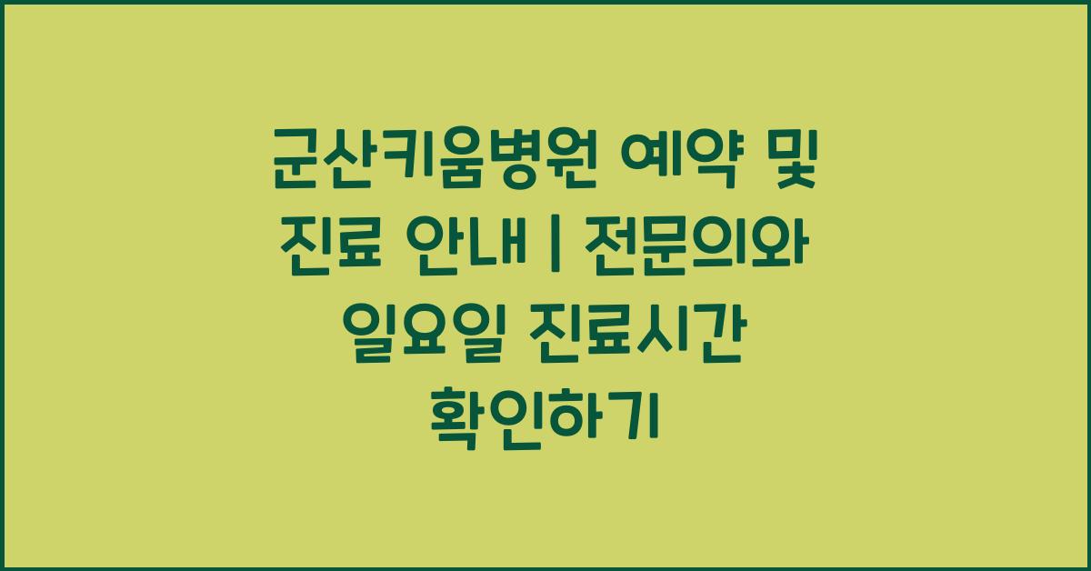 군산키움병원 예약 및 진료 안내 | 진료시간 및 전문의 정보 (일요일 진료 포함)에 대한 자세한 정보는 병원 공식 웹사이트 또는 고객센터를 통해 언제든지 확인하실 수 있습니다. 여러분도 건강한 하루 보내시기 바랍니다!
