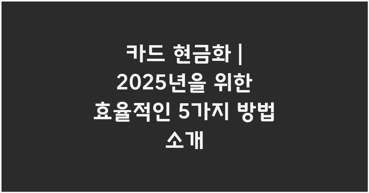 💡 카드 현금화 효율적인 5가지 방법
